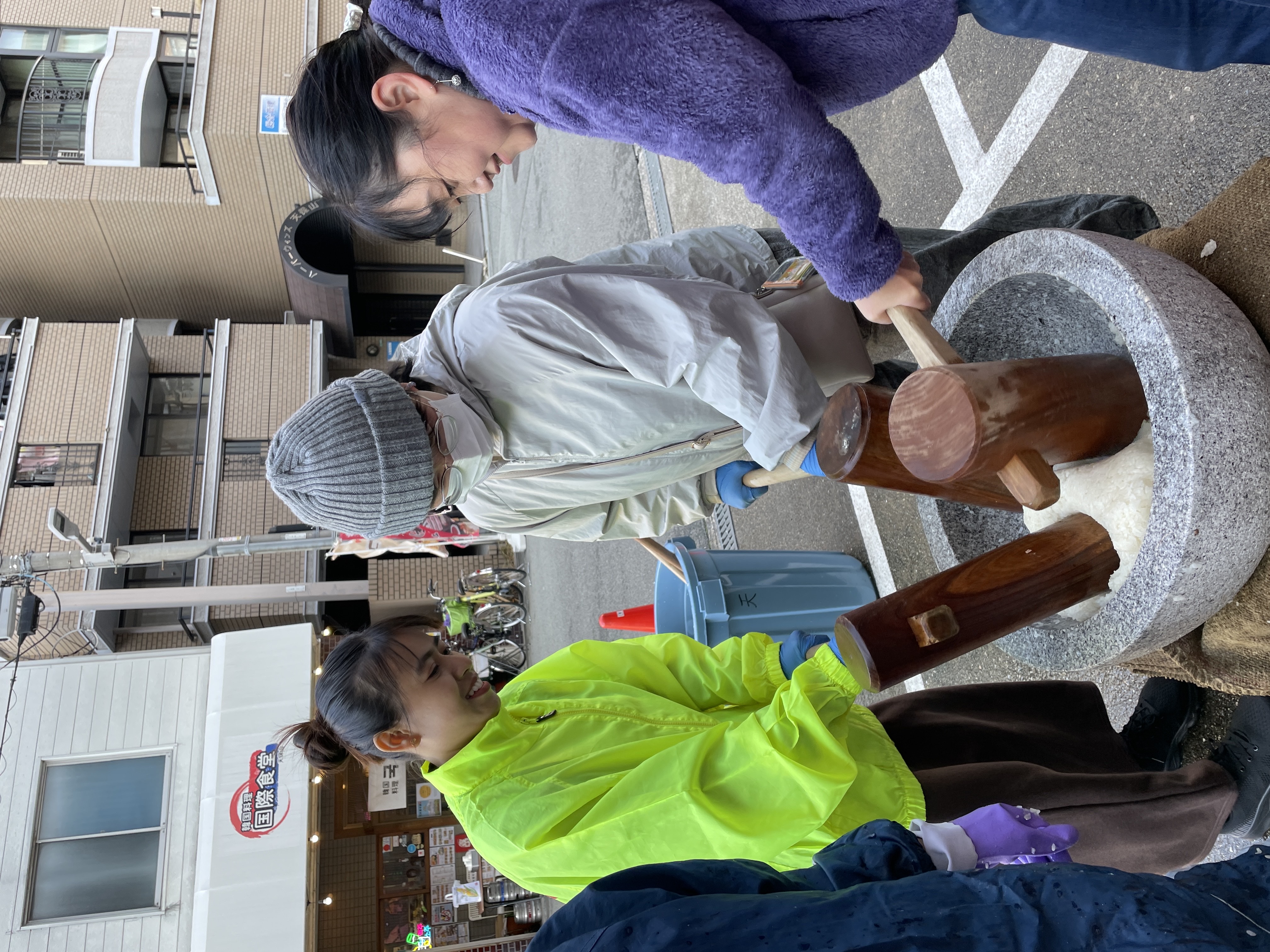 途中から風が強くなりテントが倒れるハプニングがありましたが、餅つき大会は無事に終わりました。参加してくれた皆さん、お疲れ様でした!!